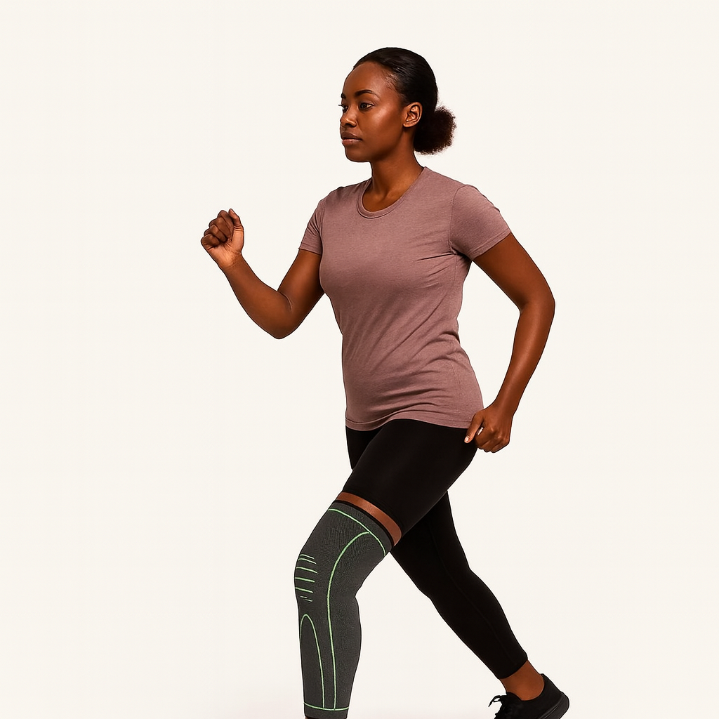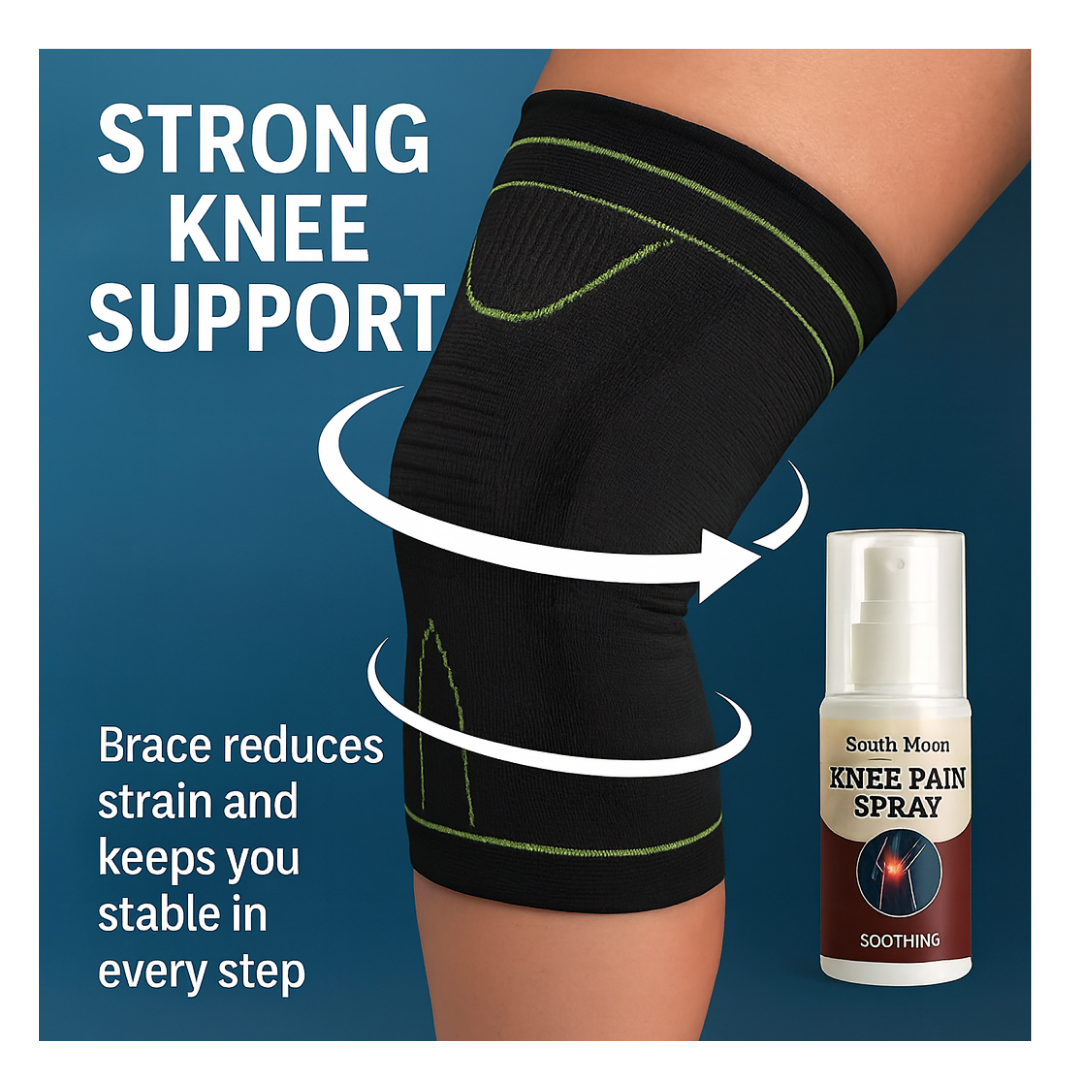 - Wear the compression brace → stabilizes your knee all day, reduces pressure, and prevents further damage.